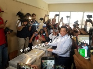 Reynosa, Tam.-El Gobernador del Estado, Francisco Javier García Cabeza de Vaca, acudió está mañana a emitir su voto en la secundaria #8, Rosario Castellanos ubicada en la colonia del Prado.