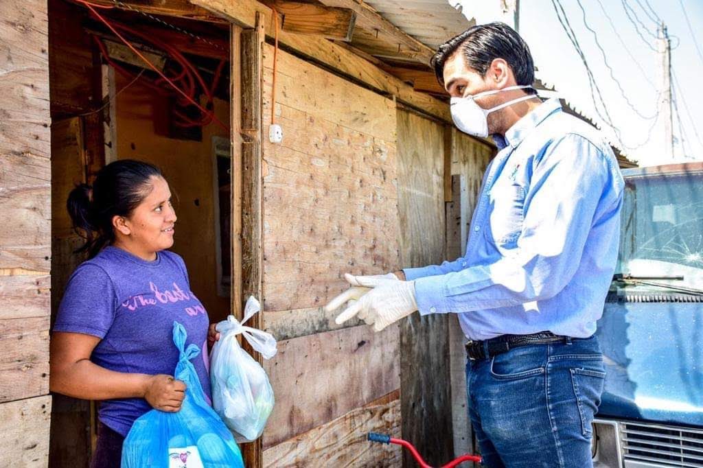 Reynosa Tam.-El presidente del voluntariado juvenil del sistema DIF Reynosa, Carlos Peña Ortiz acompañado de Alicia Guerrero Presidenta del Voluntariado DIF y regidores del Cabildo, entregó apoyo alimentario y paquetes de productos de limpieza a familias que habitan en la colonia La Nopalera. Carlos Peña Ortiz indicó que la visita a sectores vulnerables de la ciudad es con el fin de apoyar a las familias con la donación de artículos de limpieza como cloro, detergente, pinol además de guantes y gel antibacterial. Además de artículos de la canasta básica y exhortarles a no salir de sus casas a fin de evitar el incremento de casos de coronavirus durante la curva de contagios. Agradeció a los regidores del cabildo la donación de diferentes productos de limpieza, mismos que se están entregando a las familias más vulnerables. «Gracias a todos los que nos han apoyado en esta gran labor ante la crisis sanitaria que vivimos» dijo el presidente del voluntariado juvenil del sistema DIF Reynosa.