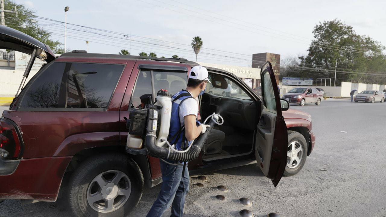 Reynosa, Tamaulipas.- A fin de prevenir la transmisión del virus que provoca la Covid-19, el Gobierno de Tamaulipas, a través de la Secretaría de Desarrollo Urbano y Medio Ambiente (SEDUMA), desinfectó más de 400 unidades de transporte público y automóviles particulares en la ciudad de Reynosa, a través de una jornada implementada por autoridades estatales en la Avenida Tecnológico de la Colonia Lomas Real de Jarachina Sur.