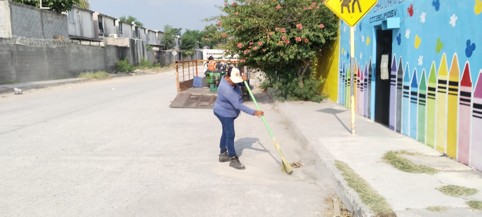 Este día, cuadrillas del R. Ayuntamiento trabajan en la limpieza, chapoleo y saneamiento del kínder Elizabeth Galván de Lozano de la colonia Jesús Vega Sanchez. Las labores de mantenimiento en las escuelas, como la limpieza y el saneamiento, son fundamentales para crear un entorno saludable y seguro para los estudiantes y maestros, una actividad en la que el Gobierno de Reynosa coadyuva.