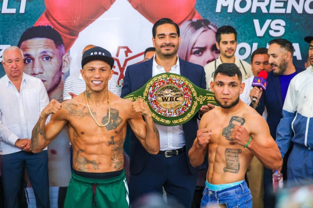 Reynosa, Tam.- El Alcalde Carlos Peña Ortiz y el Presidente del Consejo Mundial de Boxeo, Mauricio Sulaimán, encabezaron la Ceremonia de Pesaje de los peleadores por el “Cinturón Reynosa” del WBC, Miguel “El Alacrán” Berchelt y Edixon “El Cabezón” Pérez, un duro y decisivo encuentro que se llevará a cabo este sábado 11 de octubre en el Gimnasio de la UAT.